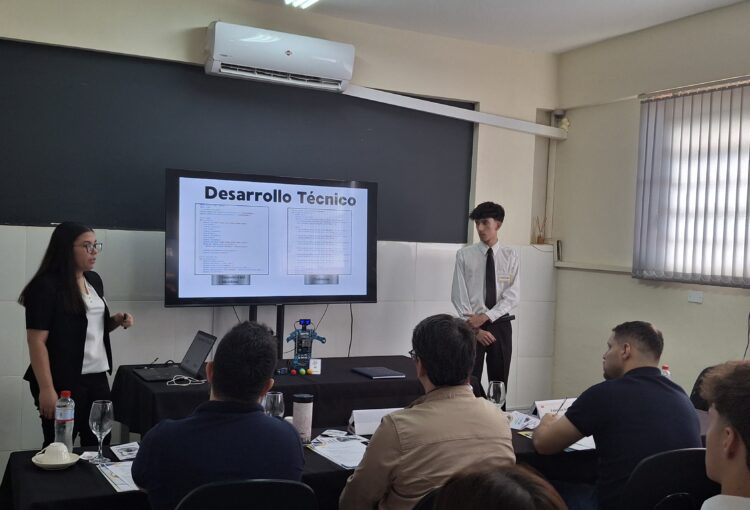 En la Defensa Final de 3.º año, Fabrizio Massen y Camila Rejalaga, bajo la tutoría del Lic. Jorge Alegre, presentaron AvaTek, un robot traductor del inglés al guaraní que integra visión por computadora, reconocimiento de colores y códigos, y respuestas emocionales en pantalla. La propuesta une robótica educativa e inteligencia artificial con un propósito social: fortalecer el aprendizaje del guaraní, uno de los dos idiomas oficiales del Paraguay y un pilar de nuestra identidad cultural.
